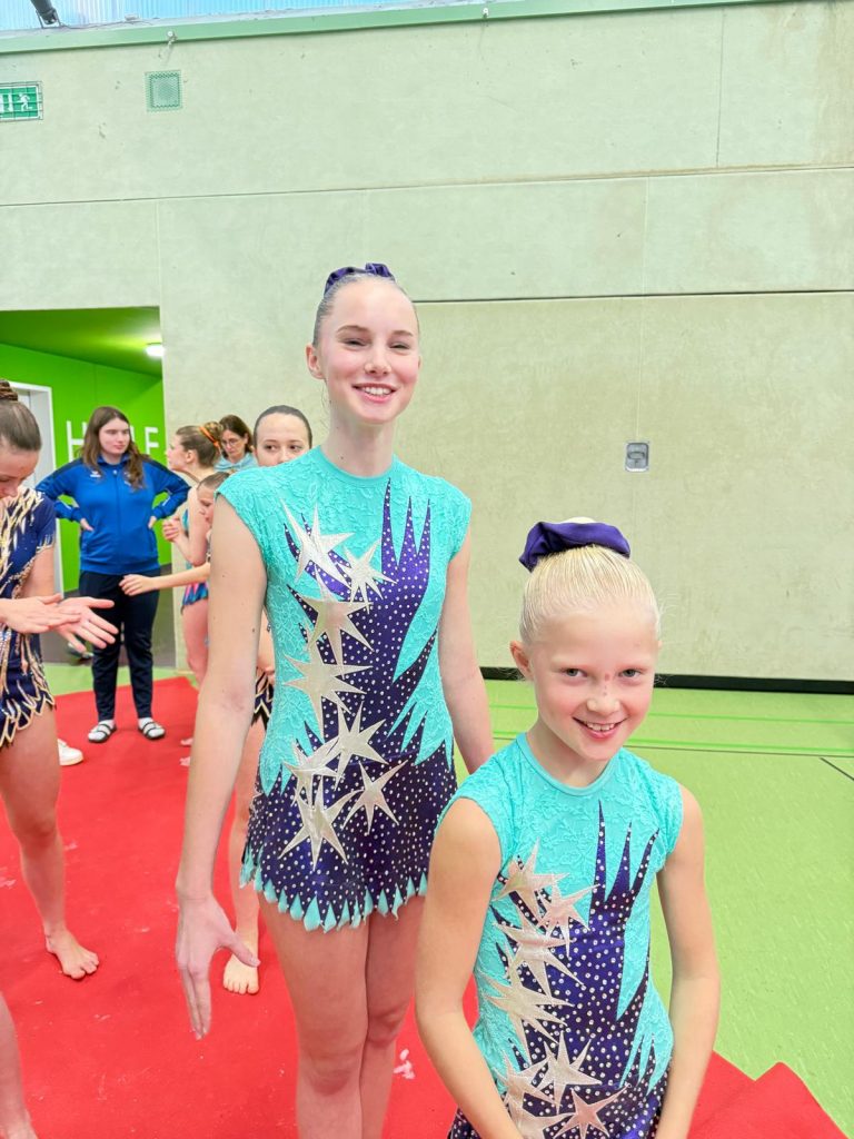 Auch unsere weiteren Athletinnen zeigten beeindruckende Leistungen: Leni Westrup, Semija Mehovic und Emilia Spanehl belegten mit 19,990 Punkten den 8. Platz in der Kategorie WKK 1.1 Damen Gruppe. Juna Testorff und Anna Ottmar erreichten als Damen-Paar in der Kategorie WKK 1.2 mit 21,610 Punkten den 11. Platz. Anna Emminger, Mailin Heinze und Leonie Kempkes zeigten ebenfalls viel Einsatz und Teamgeist und erzielten mit 18,150 Punkten den 16ten Platz in der WKK 1.2 Damen Gruppe.