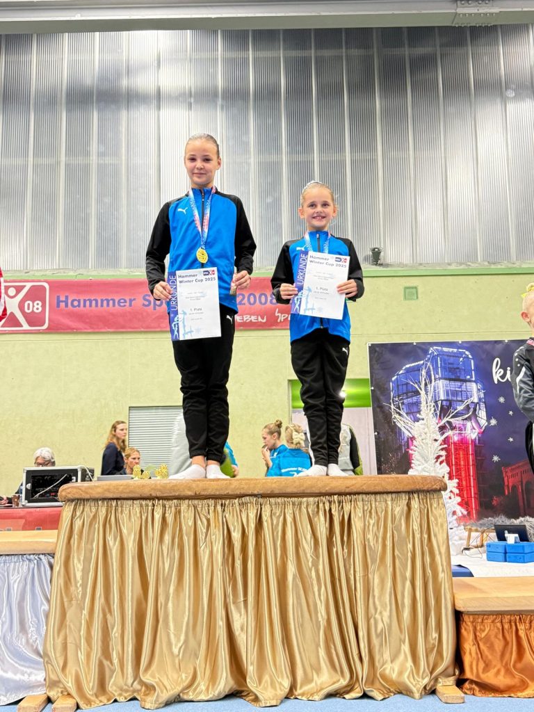 Besonders hervorzuheben ist der 1. Platz von Mila Maria Nahalewicz und Anna Otmar in der Altersklasse Level 1, W2, die mit einer Endnote von 21,870 Punkten die Konkurrenz hinter sich ließen.